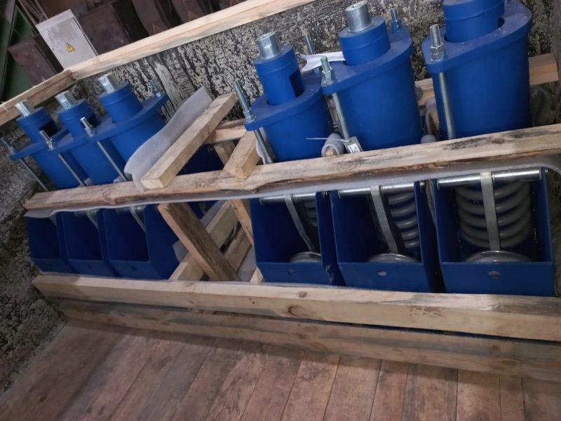 Изготовлены опоры и подвески постоянного усилия кулачкового типа. По результатам настройки и испытаний под нагрузкой отклонение усилия на монтажной точке подвеса (опирания) составило не более ± 3% на всем диапазоне рабочего хода, что лучше, чем требования зарубежных стандартов, где допускаемое отклонение ± 5% от выставленной рабочей нагрузки согласно проекту.